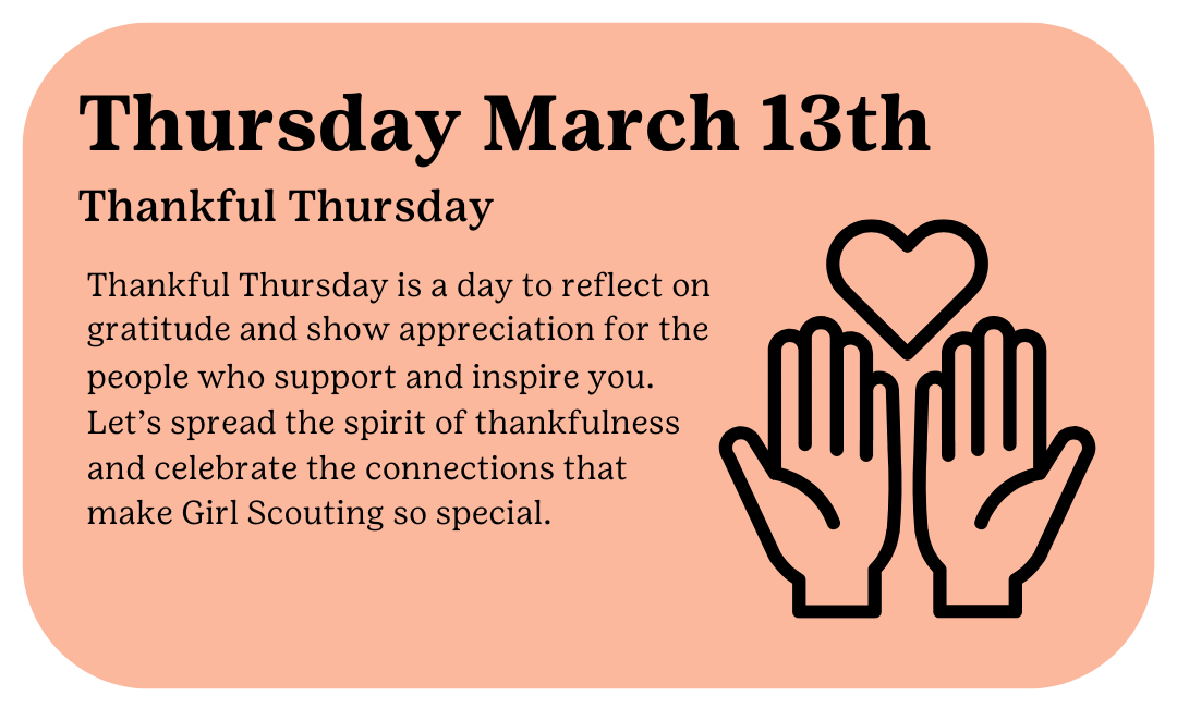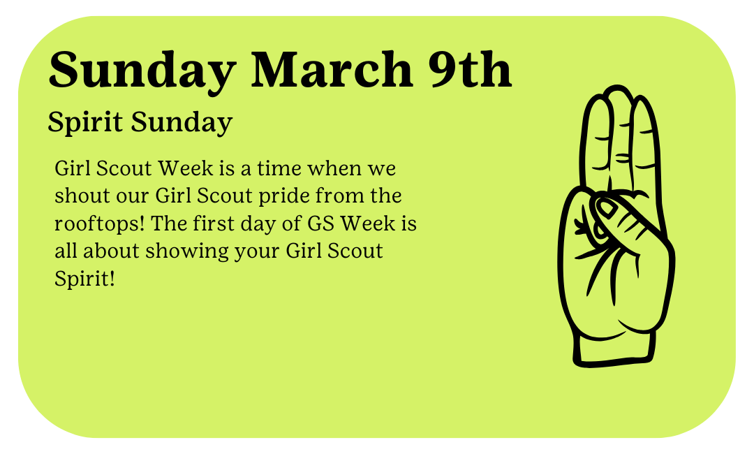 Complete one challenge each day of the week and submit your completed challenge card to earn your Girl Scout Week 2025 commemorative Patch! Completed Cards must be submitted by Friday April 5th via the online form below.