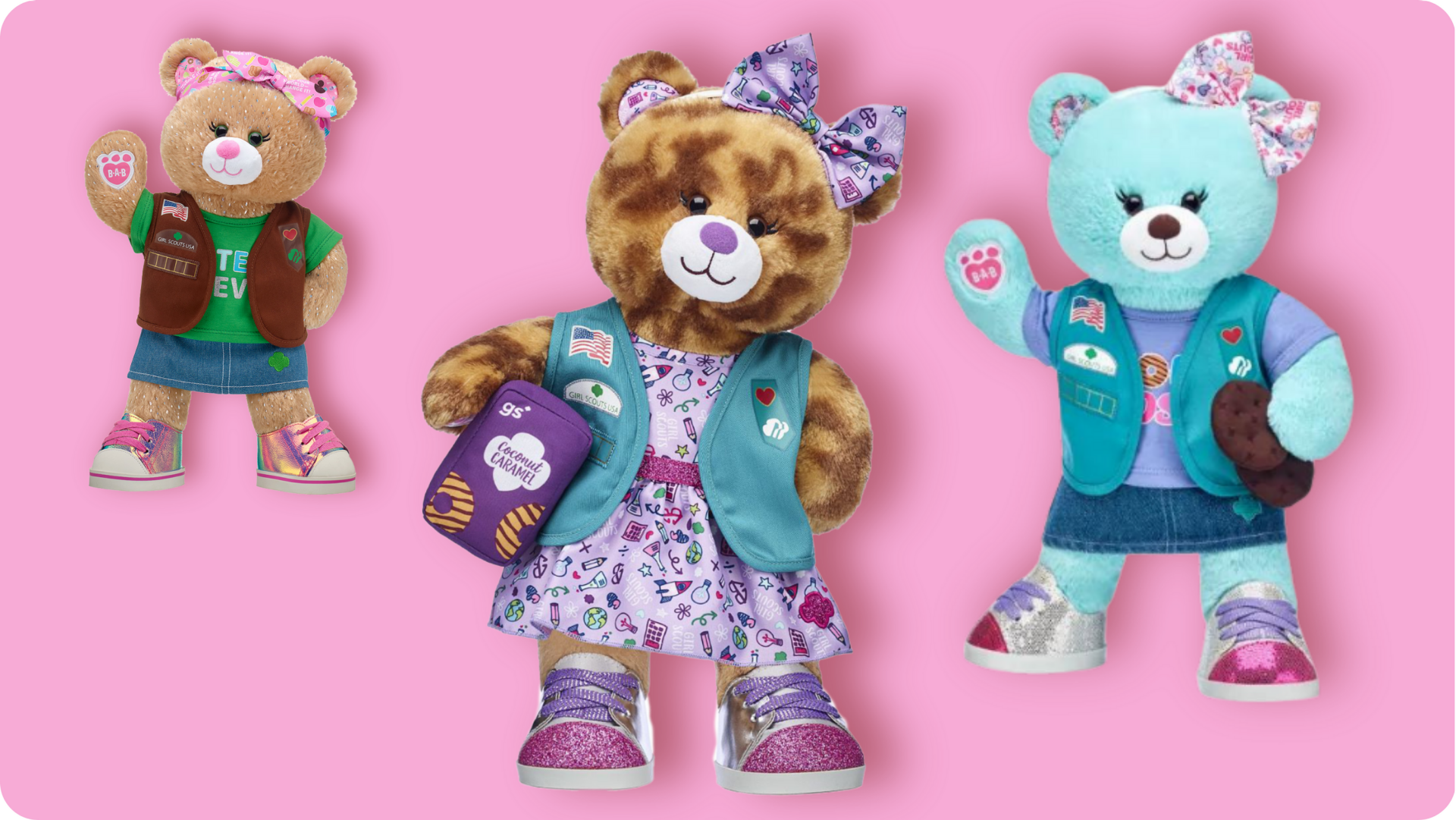 You’ll choose a furry friend, stuff it with the help of our staff, and then bring it to life with the iconic Build-A-Bear’s Heart Ceremony with a Girl Scout touch! Then have fun dressing your friend up with trendy Girl Scout outfits, cookie merchandise, accessories, and more!