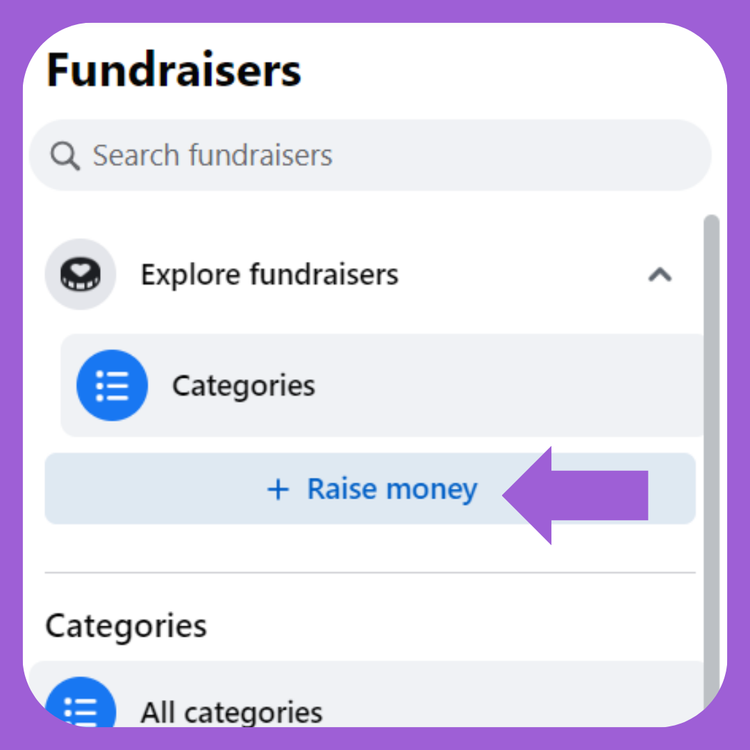 Tip: If you don't see Fundraisers on the left, then click See more at the bottom.